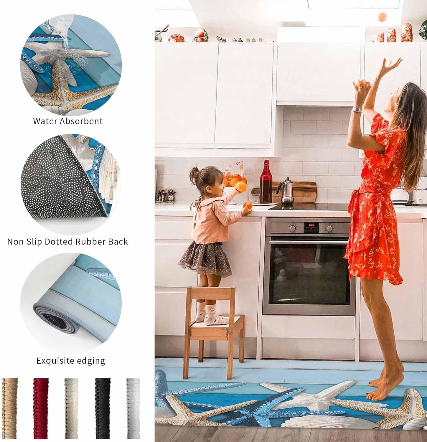 • Kitchen Rugs and Mats Set Size: Package Includes 1 piece floor doomat and 1 piece area runner rug - 19.7x31.5in+19.7x47.2in (About 50x80cm+50x120cm). Thin and low-profile design ensures that the standing mat will not be jammed by the door. Water absorption and non-skid