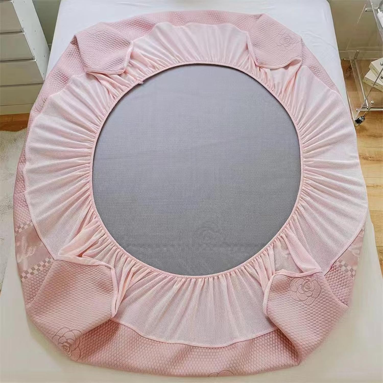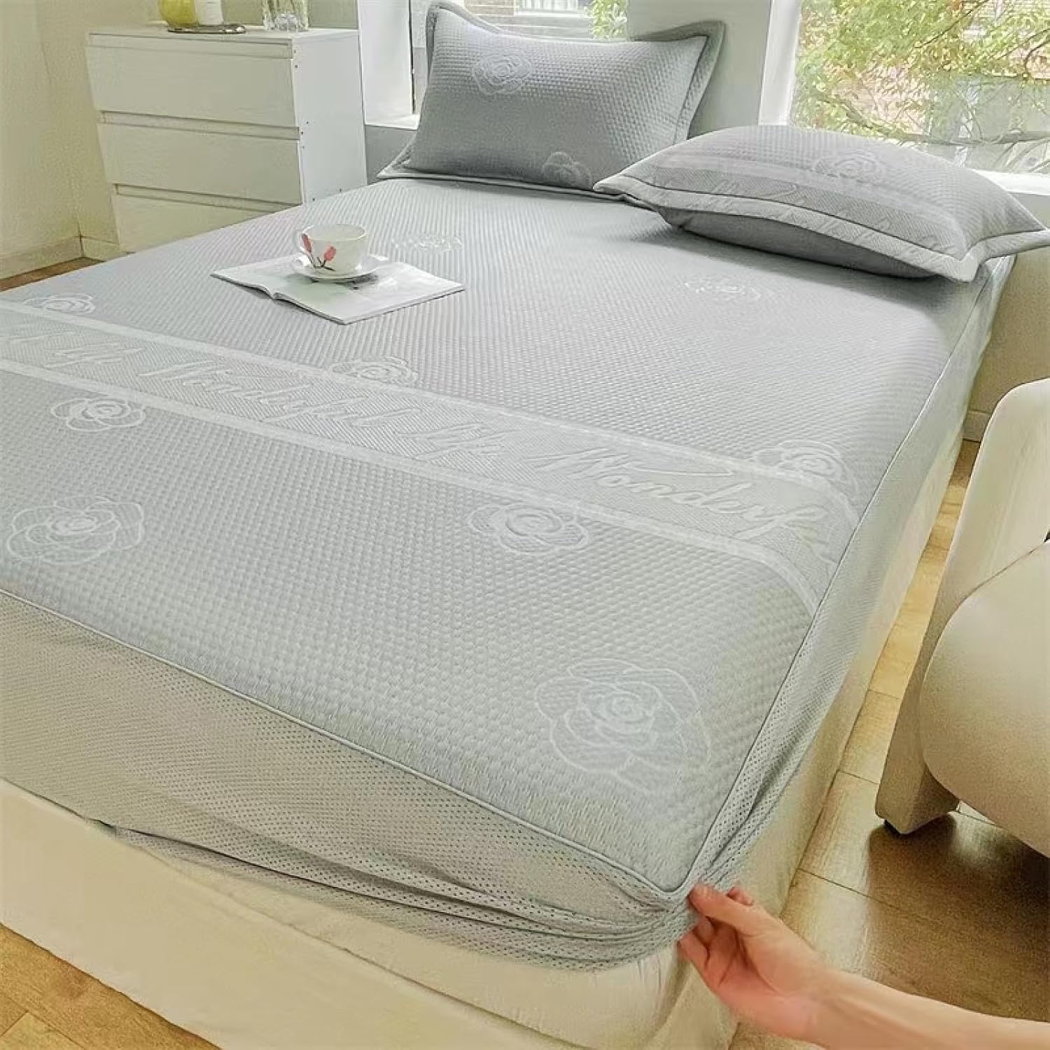 2024 summer hot product three-piece fitted mat set: Ice Cool and Cool comes with a small air conditioner" cool jacquard matFabric: Cool Silk Bottom: Composite MaterialSandwich Size: 1.5m Bed, 1.8m Bed Details: Mattress *1, Pillowcase *2 Specifications: 1.5*2 m 1.8*2m 2*2.2m "