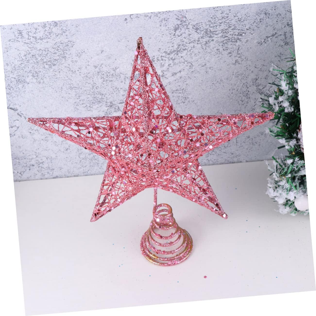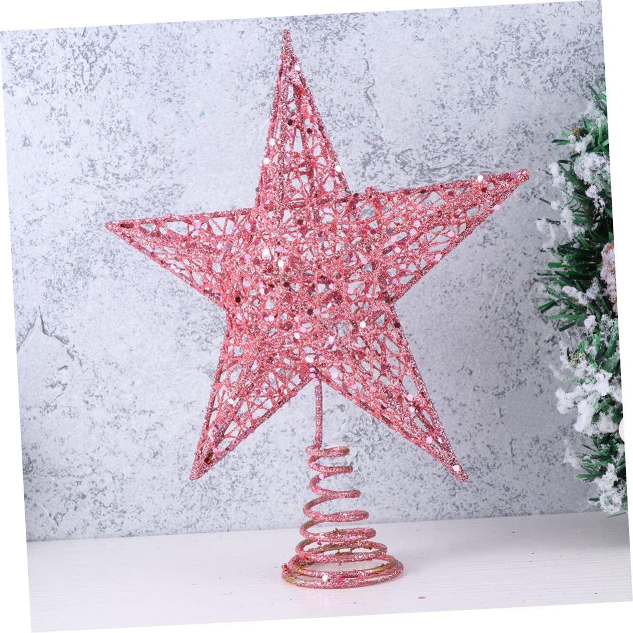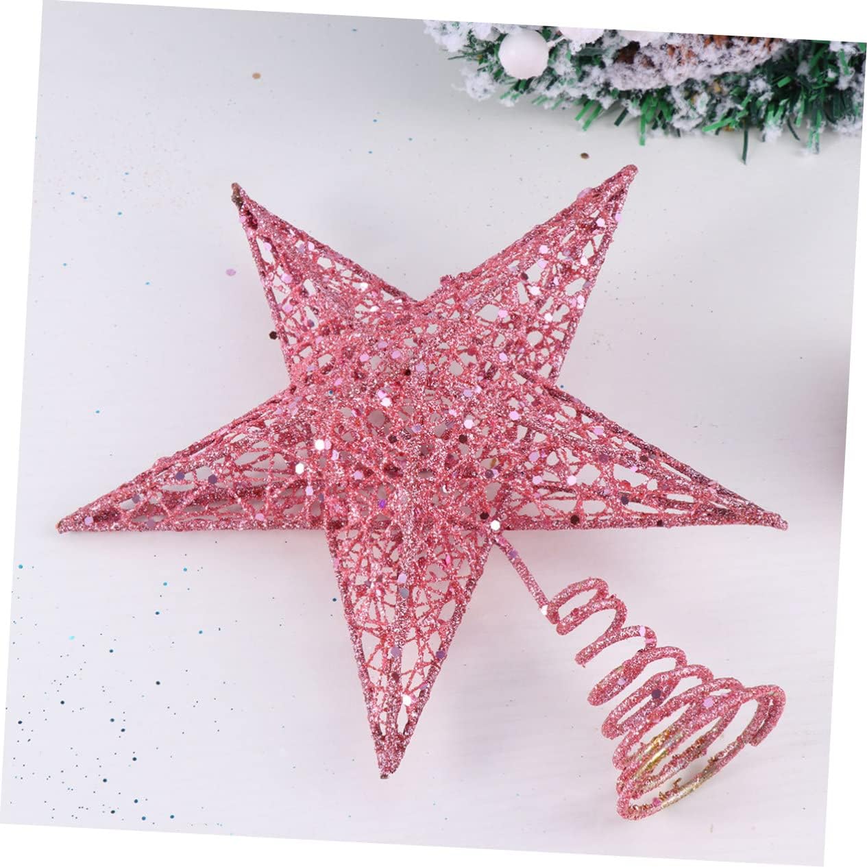 Package List 3 x Christmas Tree Topper Characteristics - Size: About 15 x 15 x 5cm pendant ornament - Color: Pink simple tree topper. - Material: Iron + glitter xmas glitter hollow star treetop topper. - Made of iron material, more stable and durable 5 point star. - The Christmas star is mainly used to insert it on the of the Christmas tree and on the treetop tree topper. - It also can be widely used at stores, offices, hotels and restaurant, and any other place that you want to decorate christmas tree finial. - Glittering star shape makes it to decorate Christmas tree topper to light up festive atmosphere and make your home more beautiful christmas tree decoration. - Chic design can really make your Christmas time memorable and full of fun christmas tree star topper.Goods Informationholiday tree heart topper Choose one and make your Christmas party full of novelty and lively festive atmosphere.xmas tree top Practical and delicate.metal star topper This item is manufactured with for durable and use.Christmas treetops Classic glittering star design makes it as Christmas, weddings, party ornaments, and also great for home and office decor, etc