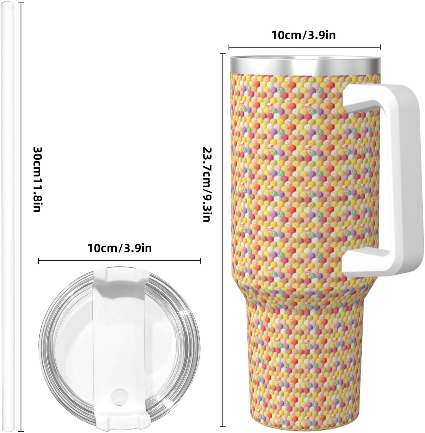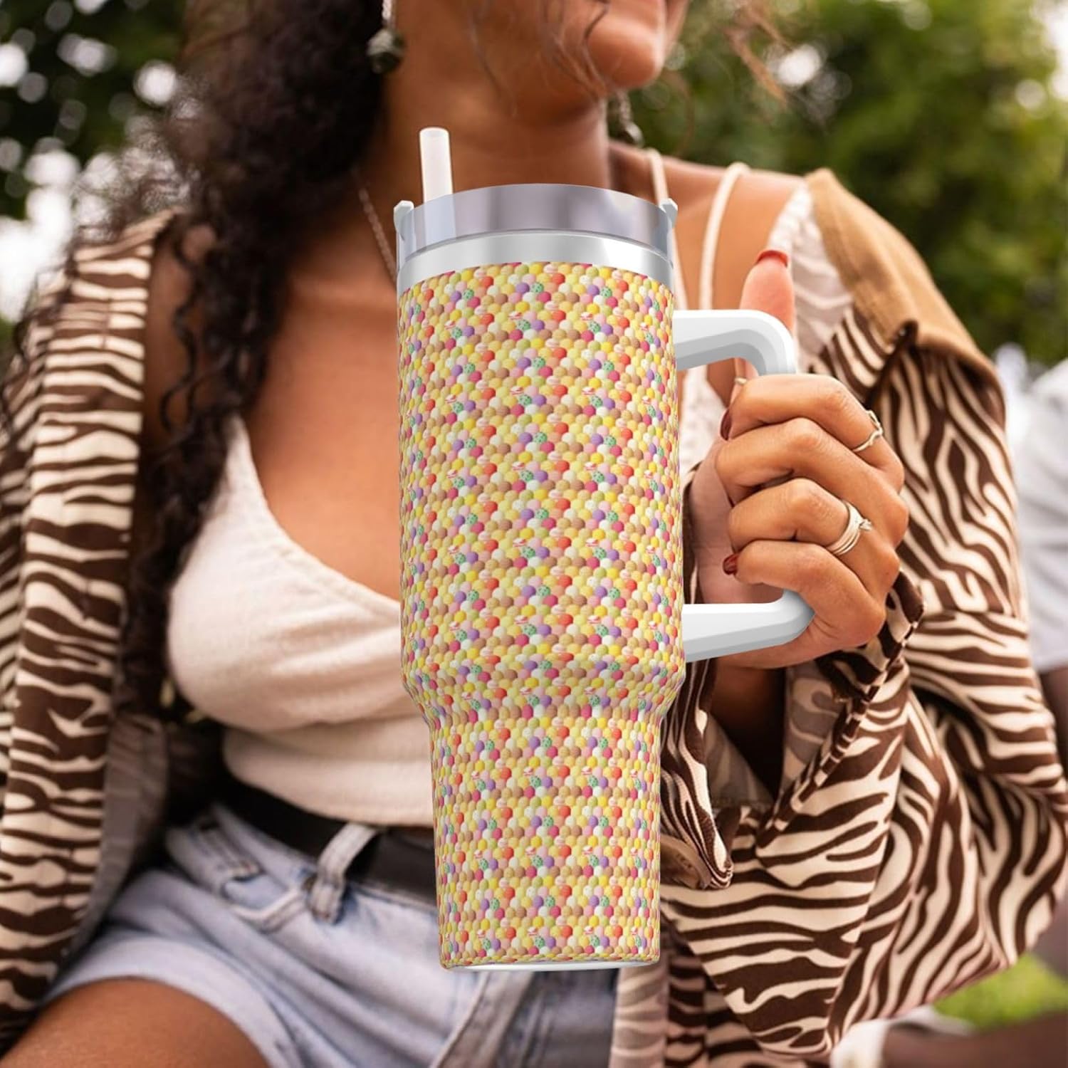 This Ice Cream Print Ice Bully Cup features a double layer stainless steel design that can be used for a long time without rusting. The lid has good sealing to prevent water from overflowing, and it is easy to unscrew for filling and cleaning. It can keep water, coffee, or drinks warm or cool for hours and is suitable for travel, camping, and driving.