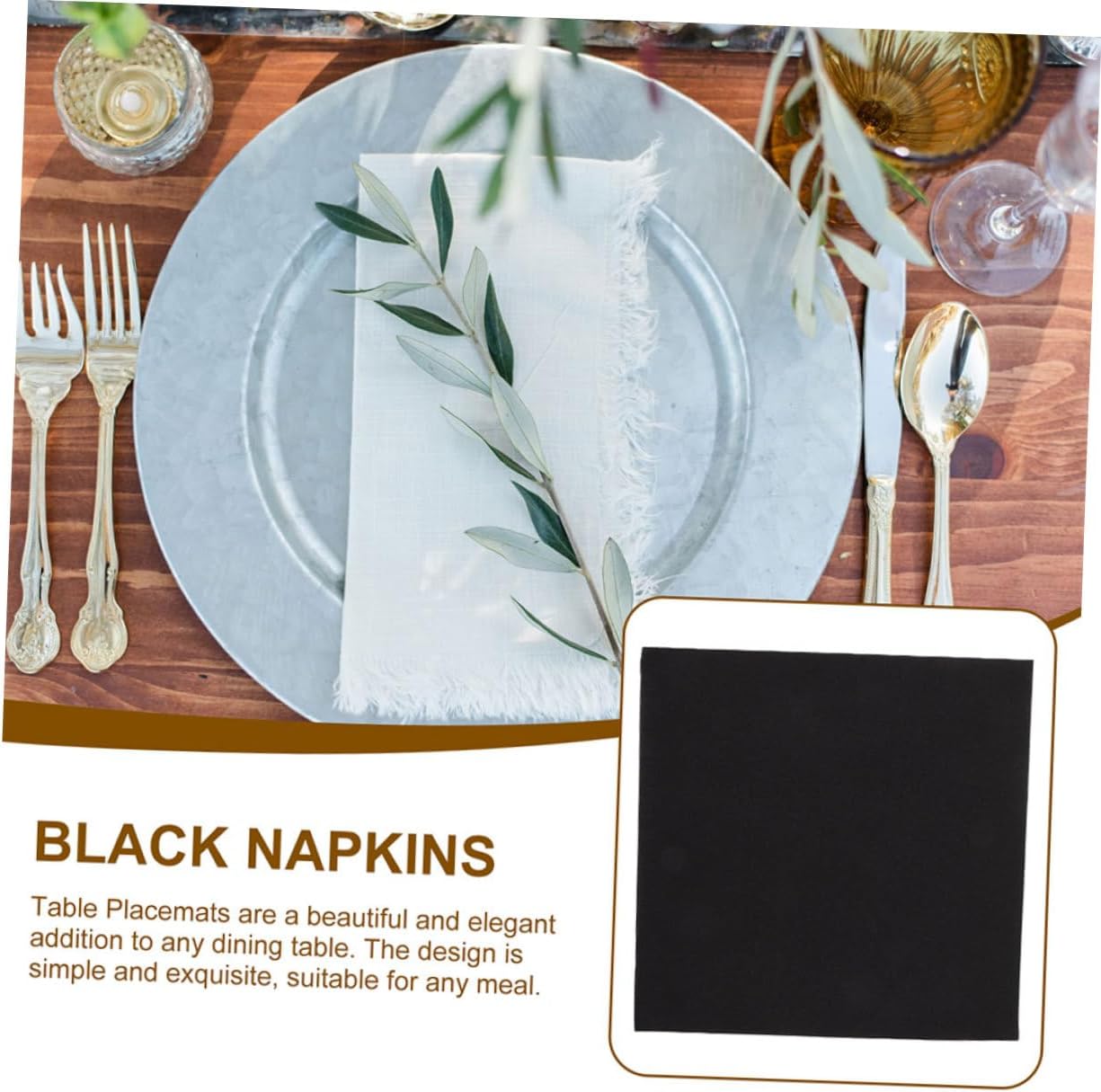 Package List Paper Napkins Characteristics -Product Info:Dust-free paper napkin - Versatile Use: The napkins are suitable for hotels, western restaurants, weddings, events, more, widely used table napkins. -Color:Black - Stylish Appearance: The simple color and compact size make napkin fashionable and elegant. -Size:20.00X19.50X0.10cm/7.86X7.66X0.04in -Material:Paper - The chic and elegant design of these napkins adds more festive atmosphere to your dinner disposable paper napkins. - Enough napkins, so these napkins can meet your different needs, and has a wide application napkins paper. - The thickened design on the tissues is very individual and shows your taste napkin.Goods Informationwedding party napkins Looking for party or holiday napkins? Our napkins will be .luncheon napkins It is made of paper materials, safe, reliable, practical and portable, ensuring its popularity.table napkins paper These holiday napkins are very suitable for occasions such as family parties, wedding, banquets