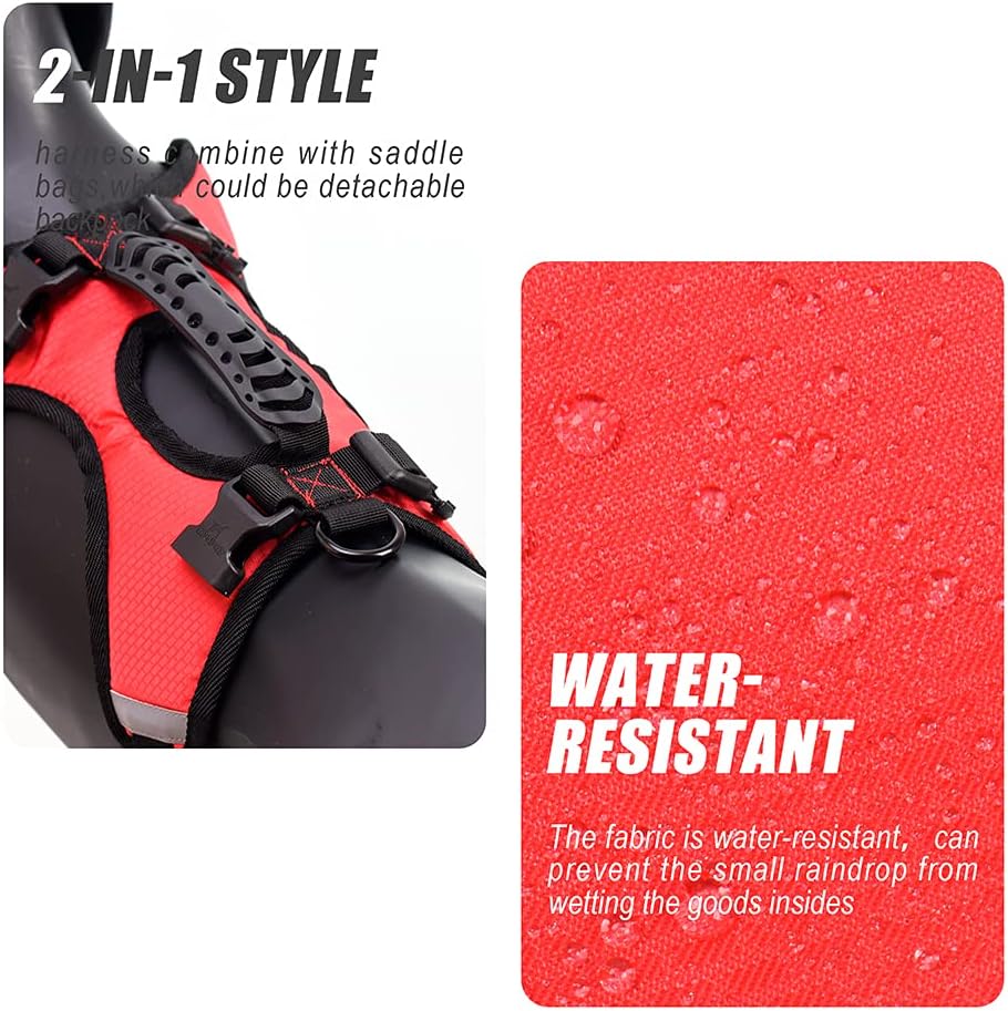 Specifications: Material: polyester, plastic Size: S Girth=20.5~25.2in (52~64cm), Neck=18.9~21.3in (48~54cm) M Girth=22.8~30.3in (58~77cm), Neck=22~26in (56~66cm) L Girth=23.6~37.4in (60~95cm), Neck=23.6~31.5in (60~80cm) Please measure your dog’s chest circumference to decide the size. Thanks! Notice: 1.The backpack is more suitable for media and large dogs. Please check the size chart in the pictures shown carefully before buying the backpack. 2.Please pay attention to the balance of the side pockets. If your dog is new to the backpack, start it with a light load. Add the load gradually when he adapts to packing. 3.The material is water repellent when it drizzles but not waterproof in heavy rains and the items in the pockets may get wet.
