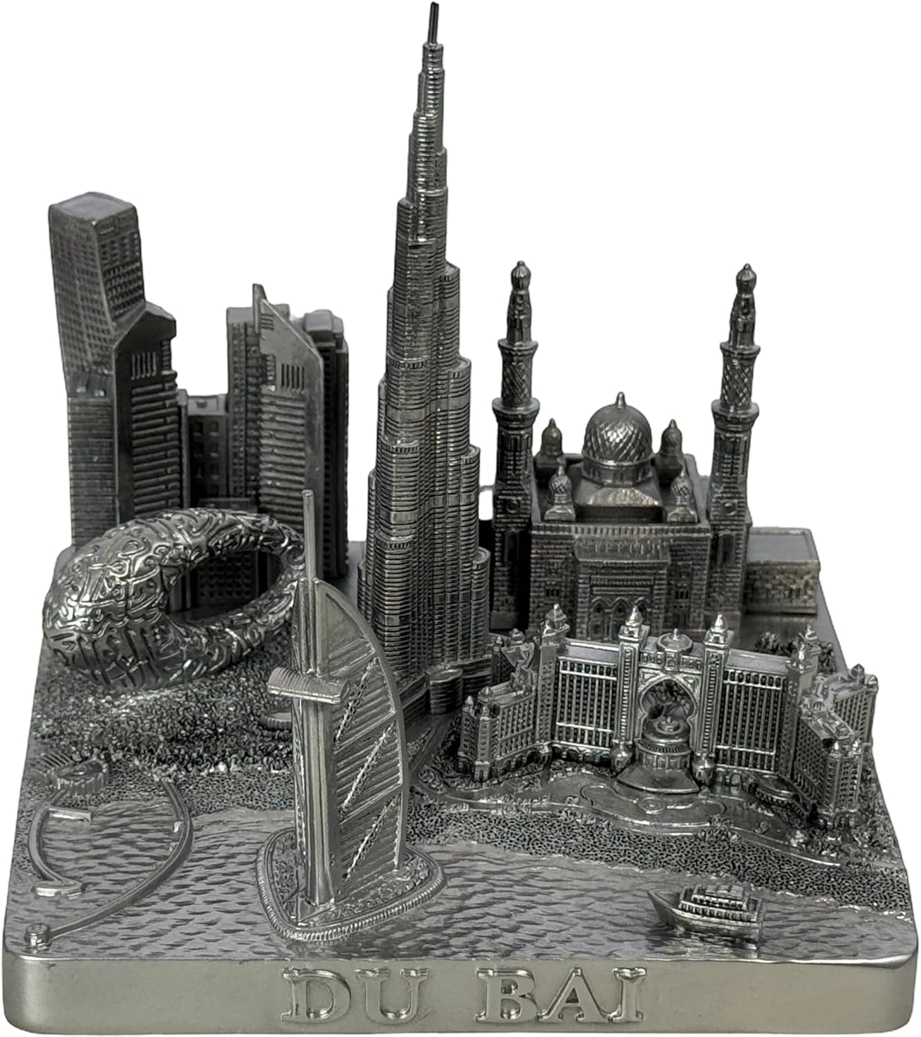 Silver Dubai city skyline 3-D model 4.5 inches. That's fine