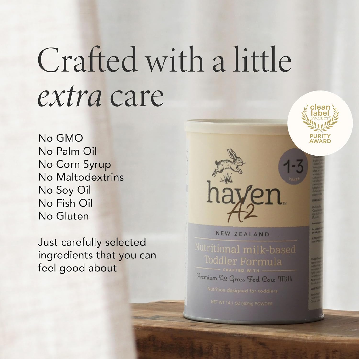 | Special Ingredients | Grass-fed A2/A2 beta-casein protein cows milk base, plant-extracted DHA , prebiotics + probiotics, lutein |