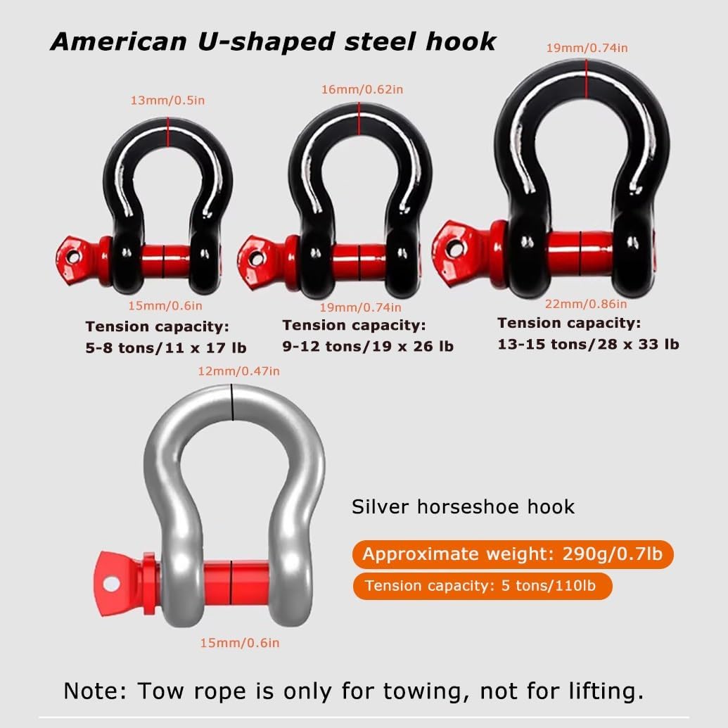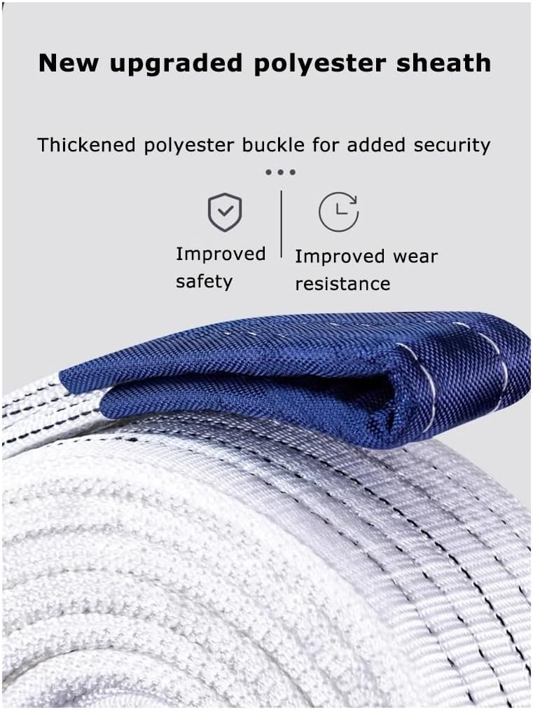 What to do if your car suddenly breaks down? Then you'll definitely need a high-quality tow rope.Specification:Product Name: Tow RopeMaterial: High-strength nylon + American-style hookColor:WhiteSizes: 3 m/5 tons , 3 m/10 tons , 3 m/18 tons , 4 m/5 tons , 4 m/10 tons , 4 m/18 tons , 4 m/25 tons , 5 m/5 tons , 5 m/10 tons , 5 m/18 tons , 5 m/25 tons , 5 m/35 tons , 7 m/5 tons , 7 m/10 tons , 7 m/18 tons , 7 m/35 tons , 9 m/35 tons , 10 m/10 tons , 10 m/18 tons , 10 m/35 tonsRope Breaking Strength:77160 lbsApplicable to: Small and medium-sized trucks and SUVPackage Included:Tow Rope x1Steel Buckle x2Notes:.Manual measurement data may contain errors. Please refer to the actual product received.