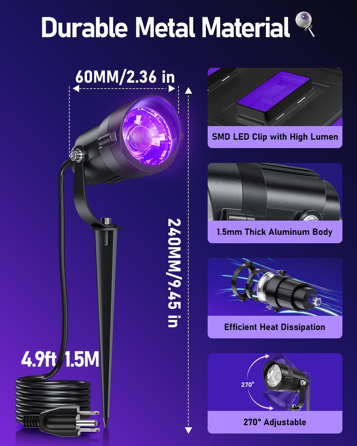 | Light Source Special Features | Black light wavelength (385-400nm), Durable and weather-resistant |