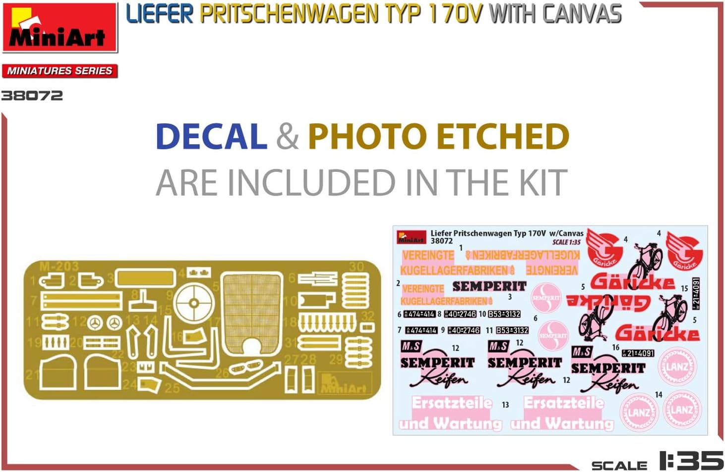 1/35 LIEFER PRITSCHENWAGEN TYP 170V WITH TELAIl "Liefer Pritschenwagen Typ 170V" was a commercial commercial product of the Mercedes Benz automotive house. Si trattava di un furgone leggero a pianale utilizzato principally per scopi di consegna e trasporto di merci.Ecco alcune informazioni chiave sul Liefer Pritschenwagen Typ 170V:Product: Il Liefer Pritschenwagen Typ 170V stato prodotto tra il 1936 e il 1953.Commerciale use: Questo veicolo was destinato mainly all'uso commerciale e industriale. Era utilizzato per trasportare merci e materiali da un luogo all'altro.Design: Il Liefer Pritschenwagen Typ 170V aveva un design compatto con un cabin di guida per l'autista e un pianale aperto nella parte posteriore. Questo pianale poteva essere utilizzato per trasportare una variet di merci, e il veicolo era spesso personalizzabile in base alle esigenze del cliente.Motorizzazione: Il veicolo era alimentato da un motore a benzina da 1,7 litri che erogava una potenza sufficient per le operazioni di Transporto.St. oria: Il Liefer Pritschenwagen Typ 170V stato prodotto in un periodo che includeva gli anni della Seconda Guerra Mondiale. Dopo la guerra, stato utilizzato per la ricostruzione e il trasporto di materiali.Eredit: Il Liefer Pritschenwagen Typ 170V rappresenta un pezzo di storia dell'industria automobilistica tedesca. La sua produzione stata interrotta nel 1953, ma alcuni esemplari sono ancora in circolazione o sono stati preservati da appassionati di veicoli d'epoca.In sintesi, il Liefer Pritschenwagen Typ 170V era un furgone leggero prodotto da Mercedes-Benz per scopi commerciali di Consegna e trasso Porto di Merci. Era noto per la sua versatiit e la sua utilit nelle operazioni di trasporto e consegna.