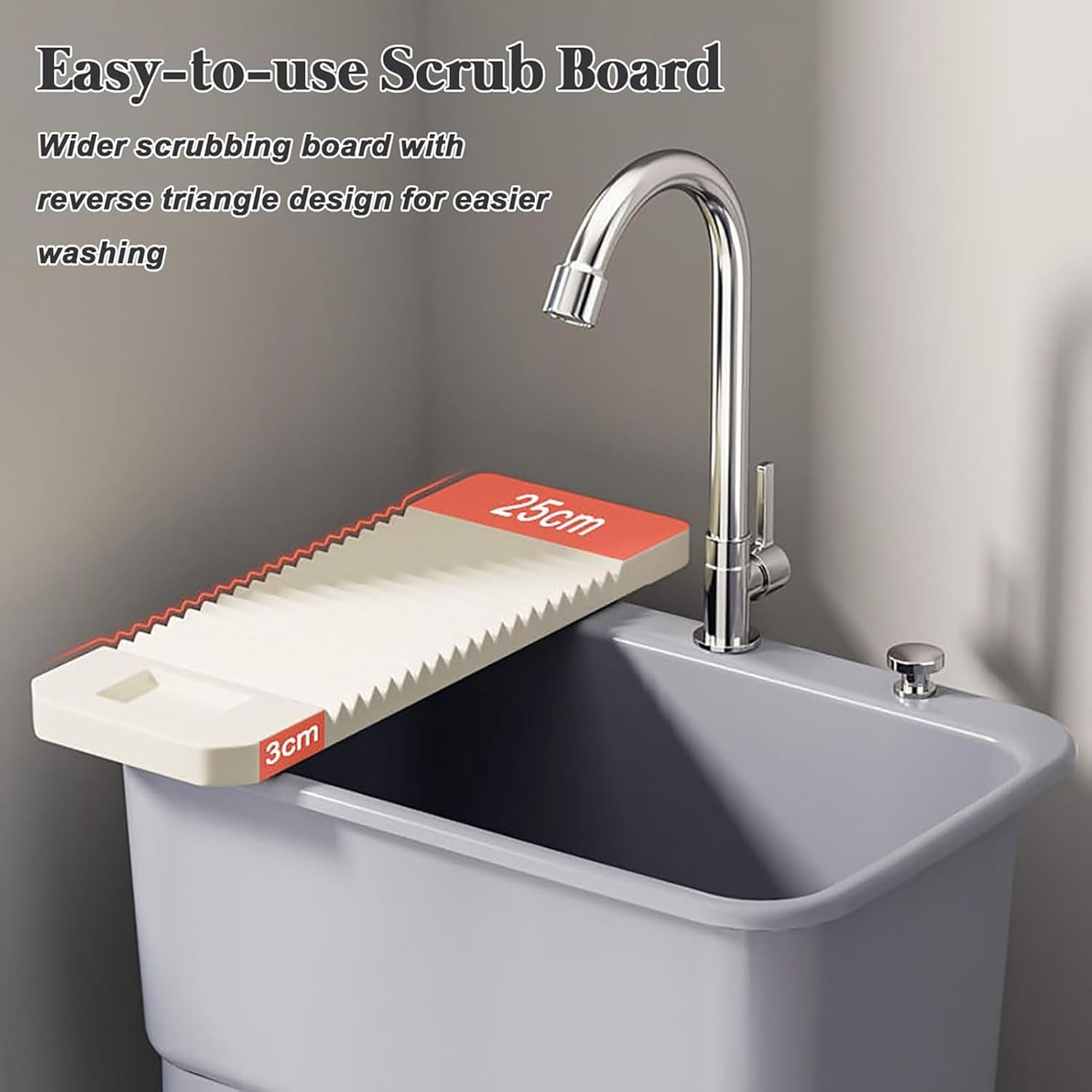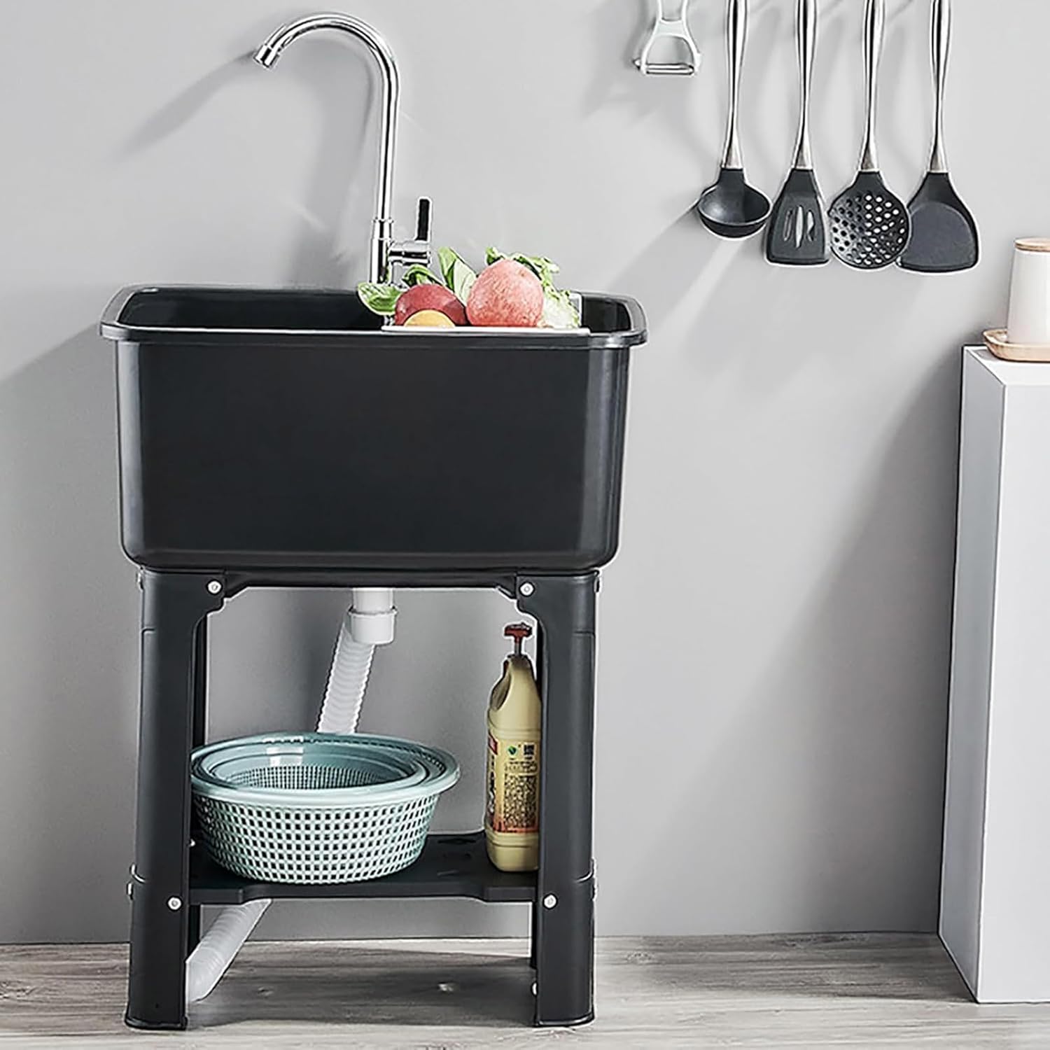 Mop Service Basin:Laundry sink can meet your various cleaning needs, such as cleaning tools, sports equipment or pets at home. It can be used for both commercial and residential use and is ideal for restaurants, RVs, bars, garages, patios, bathrooms, shops and outdoor use. Features: This sink is made of high-quality plastic material Give away a moving washboard, convenient for washing clothes Stay away from sewage, do not stain your hands There is a storage rack at the bottom of the sink The faucet can be rotated at 360 degrees Waterproof and moisture-proof, load-bearing 200kg Product Description Product Name: Plastic Freestanding Utility Tub Material: Plastic Size: Small: 40×40×76.5cm/1 7"×1 7"*30.1" Large: 60×40×76.5cm/2 6"×1 7"×30.1" Accessories: Plastic sink Washboard Faucet Water pipe Drainage pipe Accessories Note: If you have any questions, please contact us via email. We will respond within 24 hours and provide full service. Hope you have a good shopping