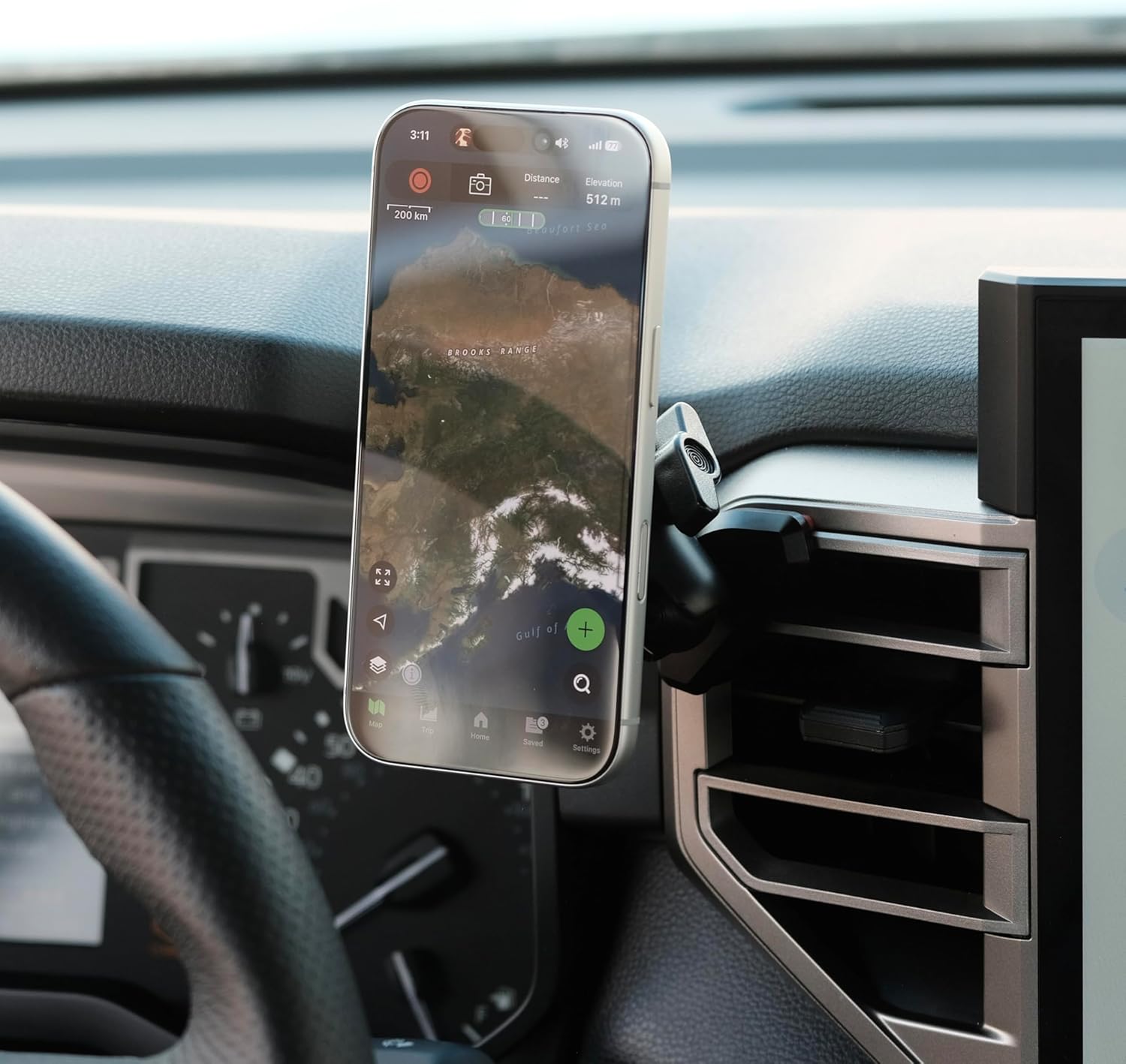 The Offroam Non-Charging Phone Mount is made for MagSafe and made for Toyota Tundra 2022-2026 and Made for Sequoia 2023-2026 dashboards, providing a secure, vehicle-specific fit without wobble or clutter. This premium mount features ultra-strong magnets (1500gf when paired with Apple case) to hold your phone steady even on rough terrain. The all-metal construction consists of precision-machined aluminum with black anodized finish, ensuring durability in extreme temperatures. Installation is straightforward—no drilling, glue, or vehicle disassembly required—and the elastomer padding protects your dashboard from marks. The 360-degree adjustable swivel arm allows perfect positioning without blocking your view, controls, or air flow. With one-hand operation, you can easily place or remove your phone without taking your eyes off the road. The mount's high-strength magnets work seamlessly with compatible cases (sold separately), keeping your device secure on any trail adventure.