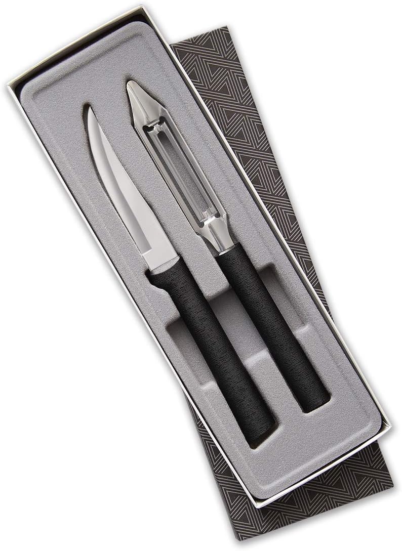 This set is small but mighty! It includes our Heavy Duty Paring Knife and Vegetable Peeler—heavy hitters in the kitchen that will handle every task with ease. The super-sharp cutting surfaces of these paring and peeling superheroes will cut prep time, getting dinner on the table fast. Packaged in an attractive, sturdy gift box—no wrapping paper needed.
