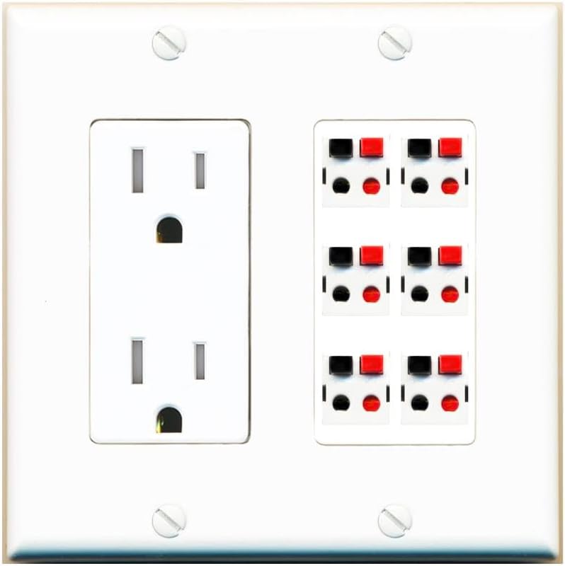 | Included Components | 15 Amp/125V Power Outlet, 2 Gang Frame, 6 x Female Jacks (Assembled), Screws |