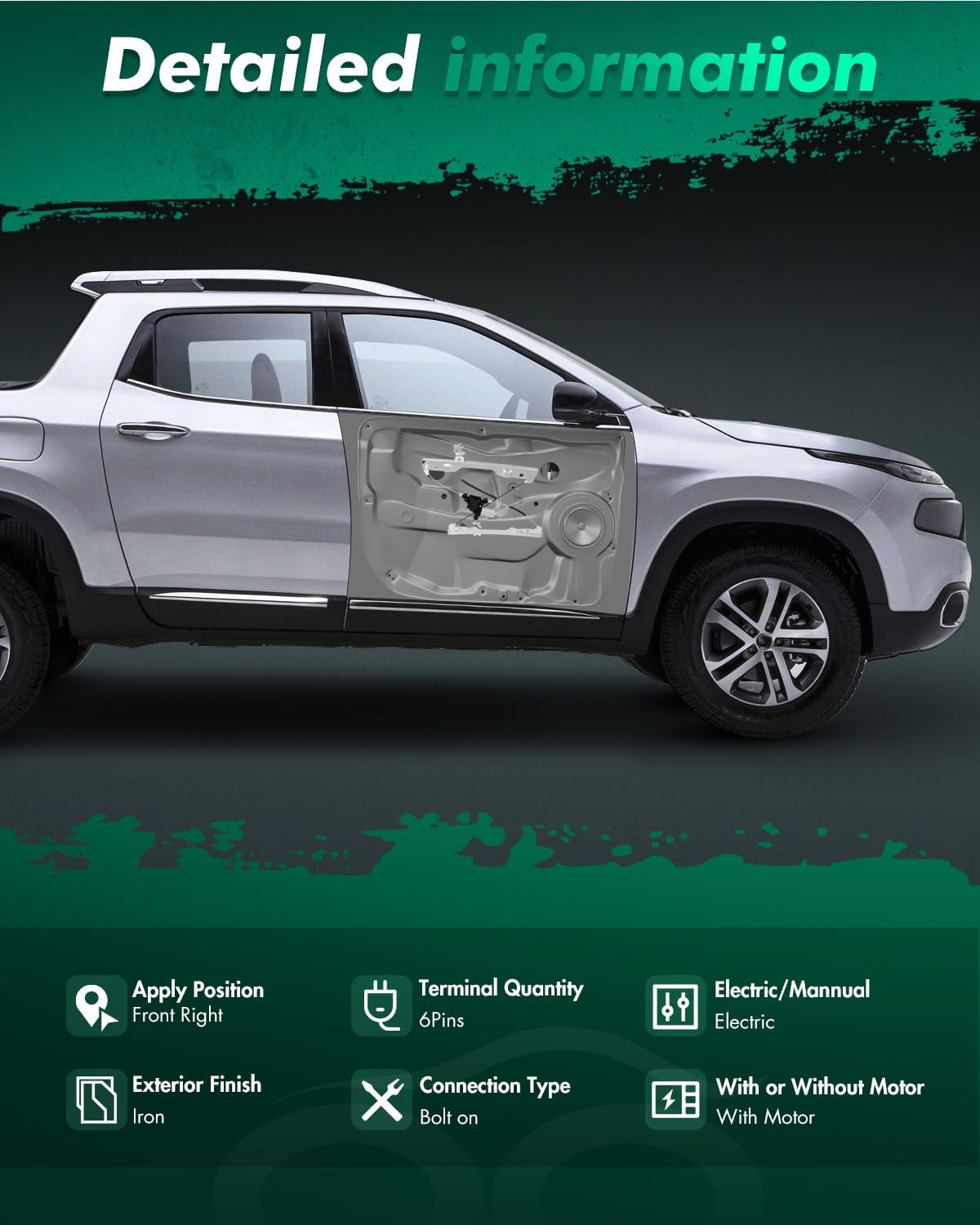 Compatible with2008-2013 For Nissan Rogue2014-2015 For Nissan Rogue SelectAbout our productA window regulator with excellent quality can provide safety and comfortable environment for the passenger.Electric window regulator is the power part which drive the automotive window up and down.Which have DC permanent magnet motor and elevating. The motor provide the power, and elevating is the supporting body of window's glass.Features1.New and Quality2.With easy installation, perfect per Compatible, solid structure and long lifespan3. The best replacement Compatible with the damaged or malfunctioned one4. Produced by the fine workmanship and sophisticated technology5. It is the combination of elegance and good use, firmly and securely.Specifications1. Material: Iron2.Configuration: W/ Motor3. Position: Front RightPackage Includes1pc Front Right Power Window Regulator W/ Motor AssemblyAbout ProblemIf you have interest in our products,and have any question about it.Welcome your inquiry.