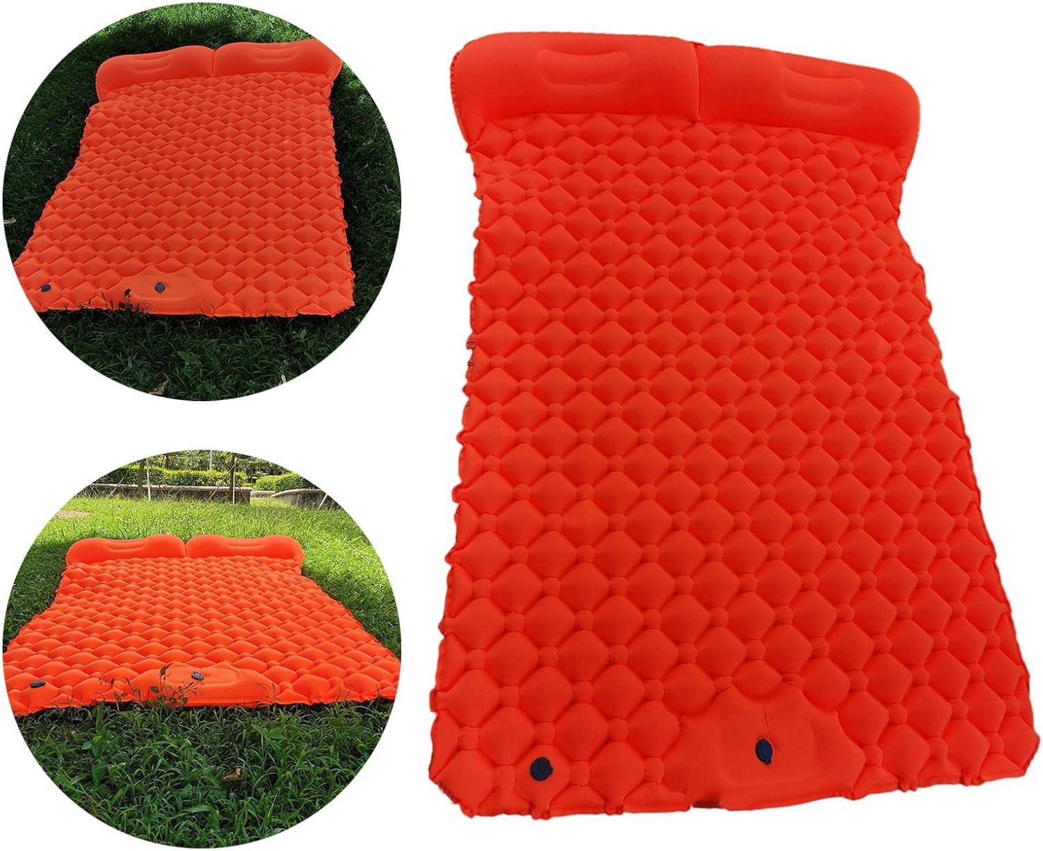 Description: - Our mat has unique hexagon design. Hexagon air cells ergonomically support all of your pressure points, giving you enough comfort all night, no matter how you sleep. - The pillow is designed in an arc shape, high neck pillow, low headrest, side lying and lie supine can protect the cervical spine, close to fit your shoulders to maintain a balanced sleeping posture. - The sleeping mat comes with a foot pump, no need to use other air pumps, simple and convenient, is the perfect companion for outdoor picnics, leisure and entertainment. - Made of spandex with TPU lamination technology, this outdoor sleeping mat is Soft, elastic, durable, and wear resistant. for camping, hiking, backpacking, self-drive tour, and it also can be used at home for guests. - Designed to minimize your pack and make camping easier, our sleeping pad enormously reduced storage size. Obviously easier to bring with compared to traditional massive heavy double camping mats, even can put in your backpack!.Size Chart:198X120X6 cm/77.95x47.24x2.36 inchPackage Includes:1 Piece Double Camping Sleeping Pad