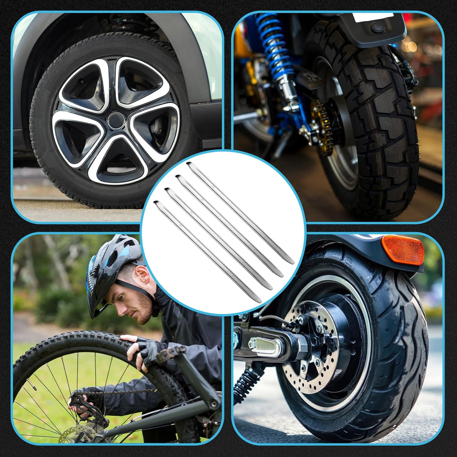 Features: Roadside & Off-Road Emergency Utility: When you run into unexpected tire troubles on highways, dirt trails, or remote spots, these tough levers let you quickly remove and replace tires without relying on bulky workshop equipment—getting your vehicle back up and running in no time. All-Round User-Friendly Functionality: Whether you're a workshop technician handling daily tire services or a casual user fixing tires at home, these levers deliver steady, low-effort performance to tackle even the most stubborn tire beads reliably every time. Specifications: Material: chrome plated steel Color: silver Size: 20 inches/ 50.8 cm Package includes: 4 x Tire Crowbars Notes: Manual measurement, please allow slight errors on size. The color may exist a slight difference due to different screen displays. Pointed items are included, please be careful when using and please keep them away from kids